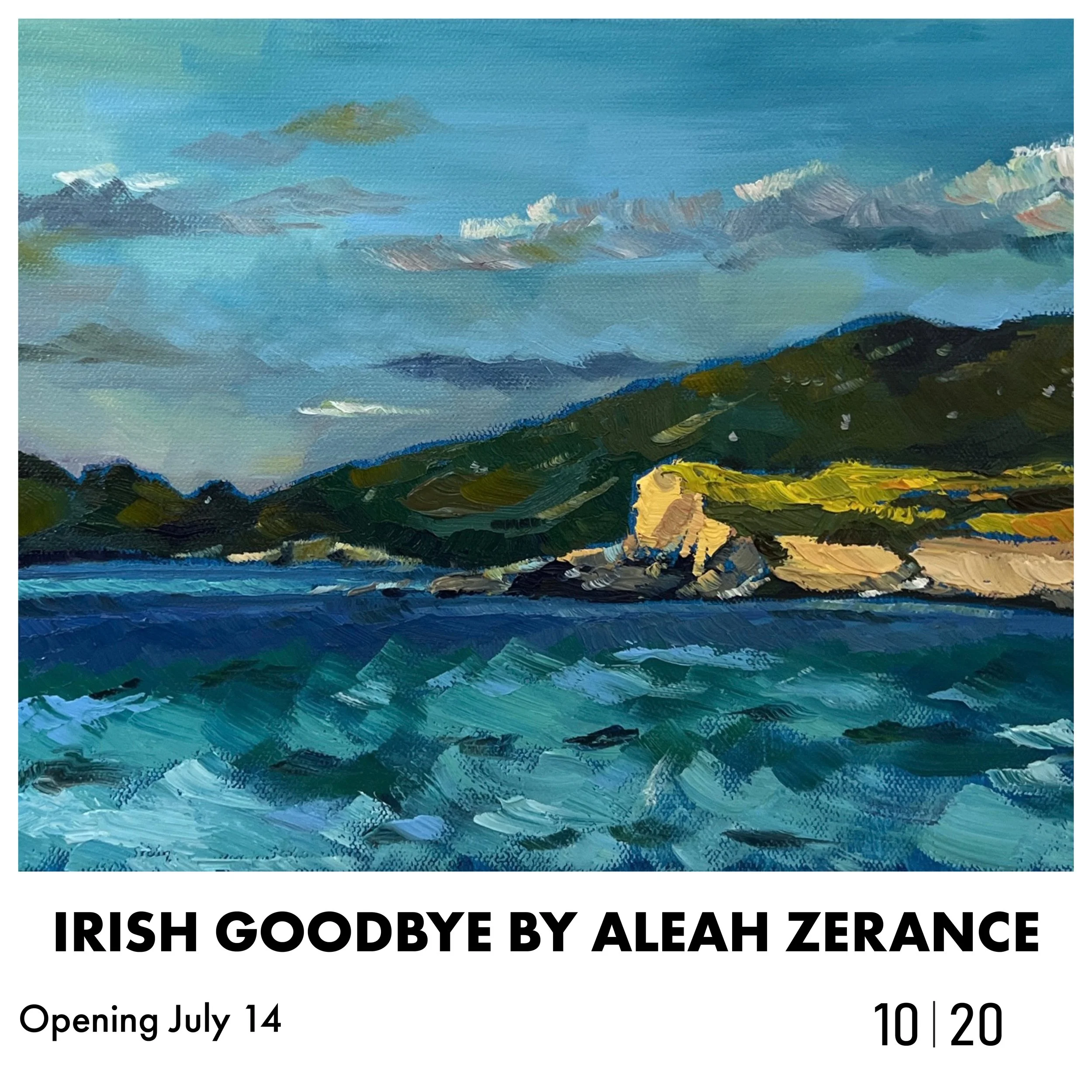 Back to All Events Aleah Zerace: Irish Goodbye Opening Friday, July 14, 2023 5:30 PM 7:30 PM Google Calendar ICS